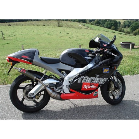 JIM LOMAS Complete exhaust "Side by Side" Mild Steel with Carbon-Kevlar silencers Aprilia RS 250